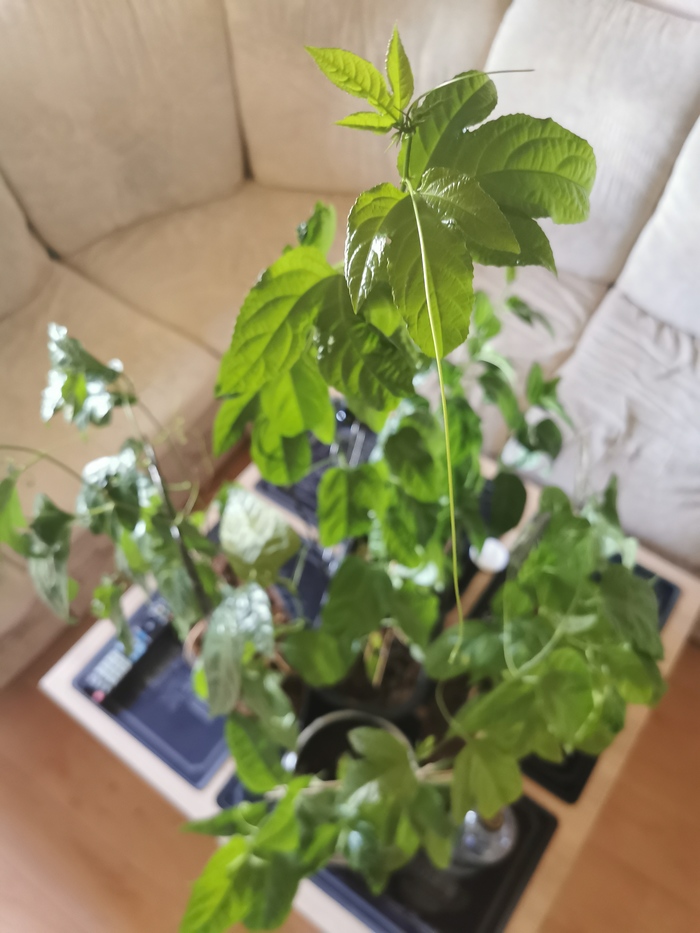 А эта маракуйя частично уже созрела, частично нет, а частично цветет.