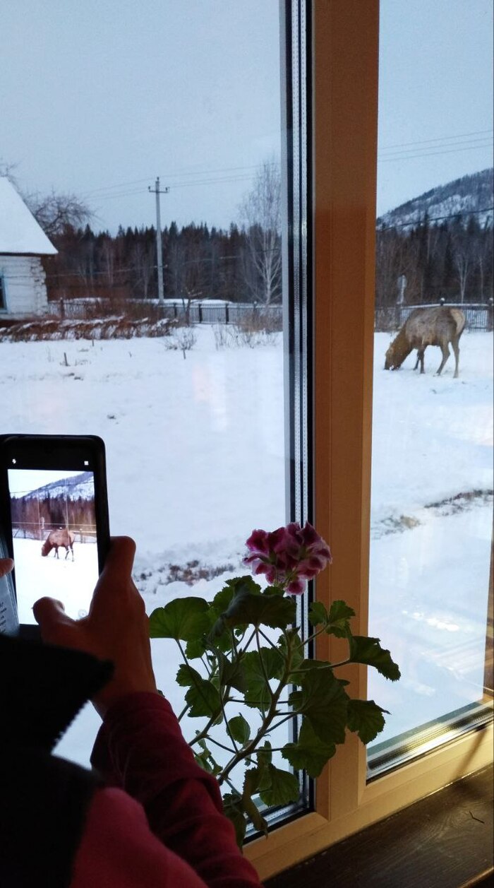 Приходит из леса и топчет мой газон. Раньше ночами приходил и иногда ночевал под березой, а теперь и днем заглядывает. Сбежал из маральника.