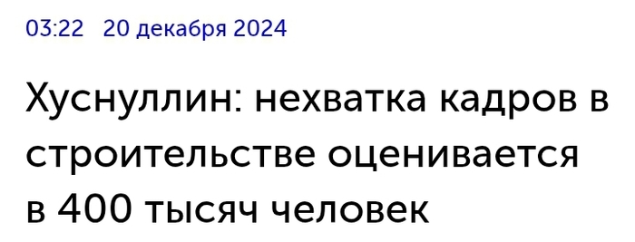 Помнится в 21-22 годах г-н Хуснуллин очень топил за увеличение числа из количества, а сейчас что-то помалкивает. Всю строительную отрасль хочет мигрантами наводнить. Хотя интересно бы было послушать, что он Бастрыкину ответил бы.
