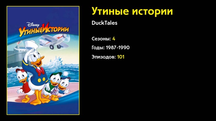 «Утиные истории» — золотой стандарт приключенческой анимации Disney, смешавшей юмор, семейные ценности, экзотические локации и запоминающихся персонажей. Сериал сформировал целую вселенную, породил не менее культовый спин-офф «Чип и Дейл спешат на помощь» и оставил неизгладимый след в поп-культуре.