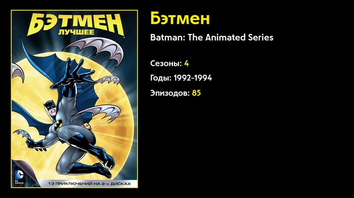 Интересный факт. Этот мультсериал положил начало Вселенной DC Анимации (DCAU). Впоследствии в этой же стилистике и continuity вышли «Супермен» (1996), «Бэтмен будущего», «Лига справедливости» и другие культовые сериалы, создав первую в истории полноценную связанную мультивселенью.
