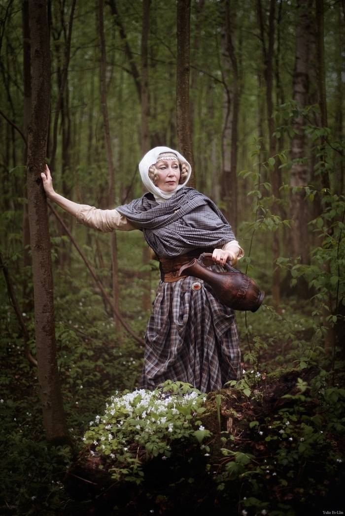 Марина: Муж мой никакого интереса к съёмочному процессу не испытывает, мужчины вообще редко любят фотографироваться. Поэтому мы моделей-мужчин очень ценим! Зато мой супруг безропотно потащит на плече деревянную прялку для съёмки или будет два часа держать свет, пока меня снимают. Он всегда прикрутит, отпилит, привинтит все что нужно мне в качестве реквизита. А так же очень приятно завалиться домой с пленера голодной и уставшей, а муж приготовит ужин к моему возвращению, это очень ценно.