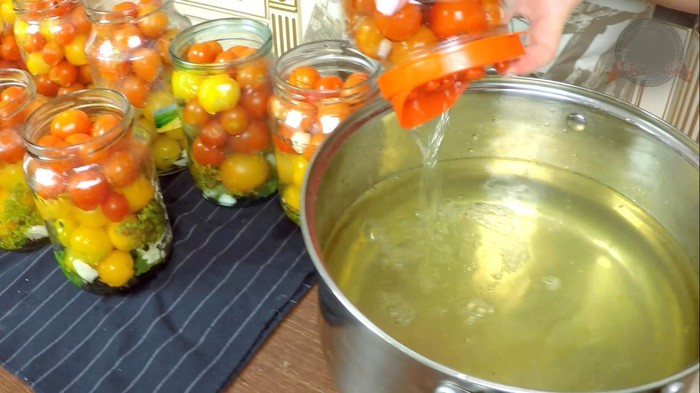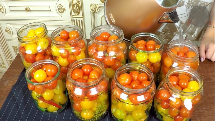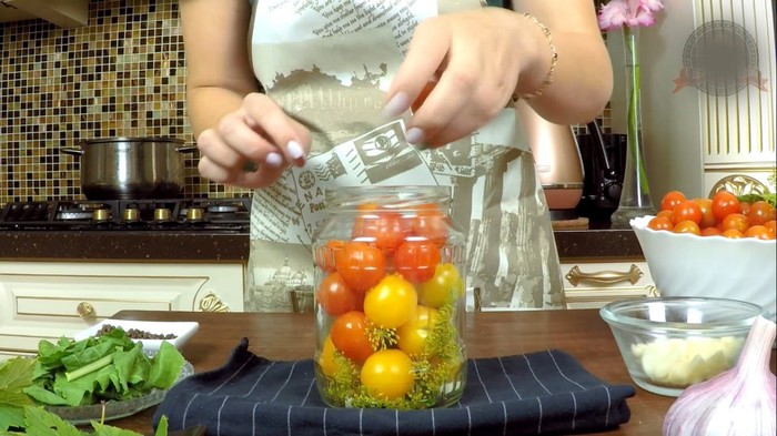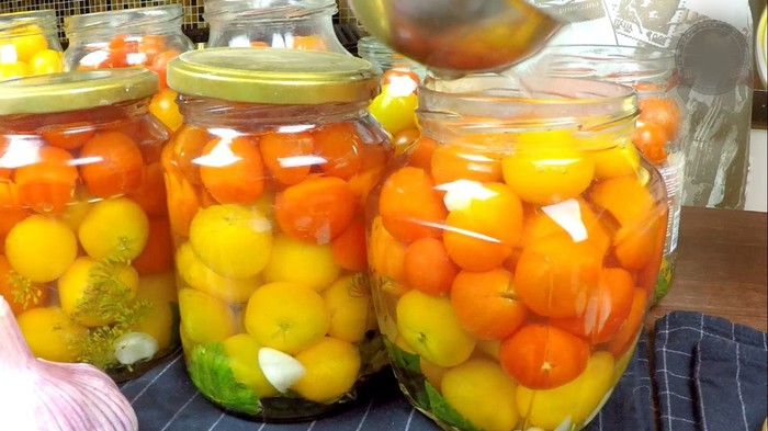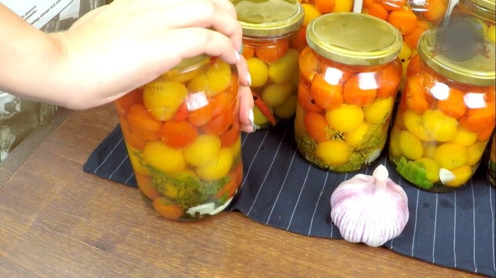 Маринованные помидоры со сливами на зиму готовы! Более подробный рецепт приготовления смотрите на видео. Приятного аппетита!