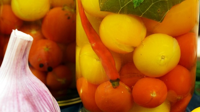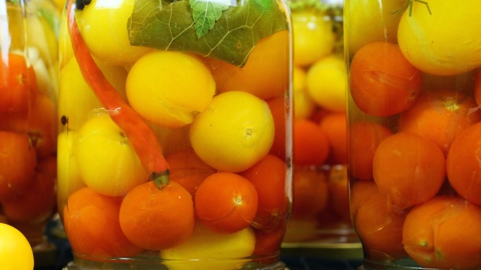 Хочу предложить вам рецепт моей любимой заготовки – маринованных помидоров со сливами. Помидоры и сливы отлично дополняют друг друга, в результате получается отменная закуска на зиму с интересным вкусом.