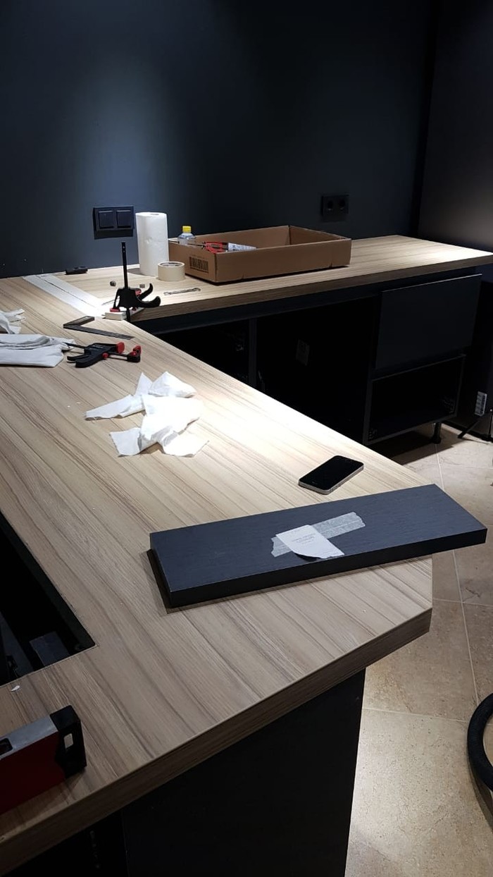 Оставила на пятницу ключи этому суперсборщику (привет тебе, бывший владелец фабрики по изготовлению кухонь в Астрахани, кухни от 400 тысяч "производил"). Вечером было удивление - да кухня же не собрана, зато все в пыли-грязи и пр. Сборщик пообещал в субботу закончить. Уехал поздно вечером.