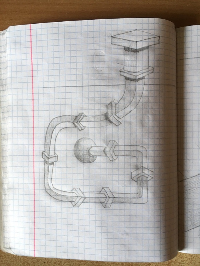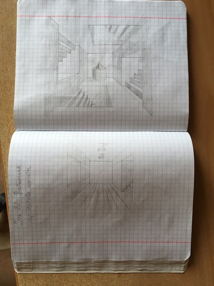 У меня осталась еще одна задача. Перед тем, как начать изучать книгу и следовать ее указаниям, я нарисовал рисунок из головы, это была отправная точка, мой нулевой уровень. Комната с некоторым количеством объектов. Сейчас я понимаю, что это был не лучший выбор для сравнения, но уже ничего не исправишь, поэтому спустя месяц обучения, я взялся перерисовывать эту же комнату, уже в более лучшем виде. Не знаю, насколько хорошо получилось, да и ошибок наверняка куча, но прогресс, так или иначе, на лицо.