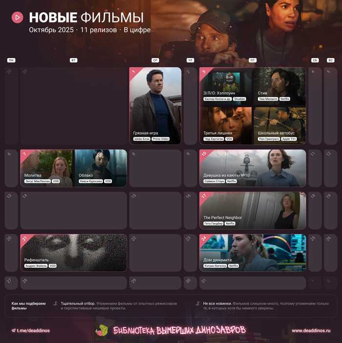Не буду останавливаться (ранее писал уже), но упомяну другие новинки - отличный Формула 1 / F1 (2025) с Брэд Питт, которого лично я оценил на 8,5 из 10, Орудия (2025), который также порадовал и от меня 8 из 10. Оба все также рекомендую (оба существенно лучше всех фильмов в подборке). Если хотите посмотреть российское кино то вышла комедия На деревню дедушке (2025), которую бы оценил на 6,5 из 10 и фильм хорош во многом из-за Юрий Стоянов.