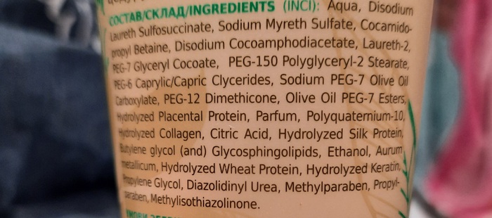 Попался мне тут в руки один интересный шампунь+кондей. Обратила внимание на слово "био-золото"