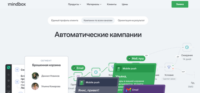 Платформа анализирует поведение покупателей и автоматически запускает коммуникации, которые повышают продажи.