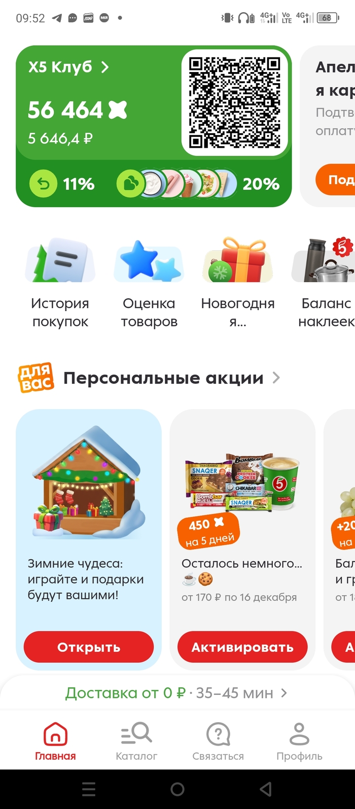 Это мои баллы по пятёрочке. Плачу оранжевой альфа картой при подключённом пакете. Но мне попроще, так как я закупаю продукты в пансионат, там суммы хорошие выходят. И в купере беру, оплачивая бизнес картой сбер. Мне в итоге баллы падают на бизнес карту и на основной аккаунт.