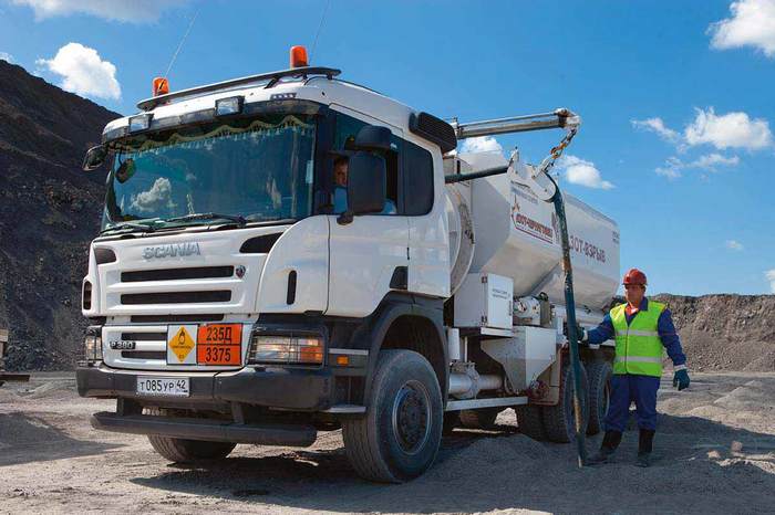 После того, как мы ответственно выполнили свою работу на арену цирка, в карьер спускаются мастера, ответственные за зарядку и подготовку к взрыву, которые осуществляют заполнение скважин взрывчатым веществом, выбранным в соответствии с необходимостью для разрушения пород крепости отдельно взятого месторождения, используя смесительно-зарядные машины (СЗМ).