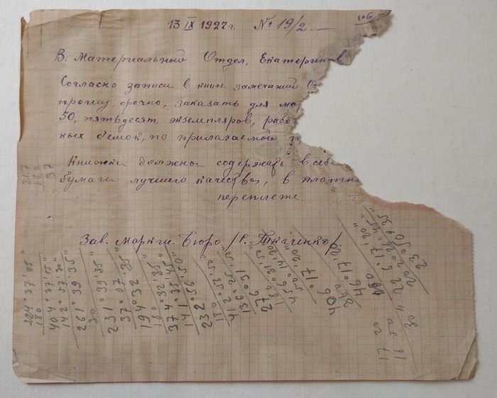 Видно, что бумага сия дальше отдела никуда не пошла, так как внизу кто-то использовал её как черновик. Сзади она также расписана карандашом.