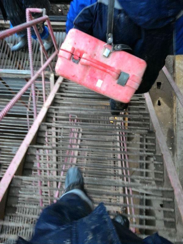 По таким лестницам мы спускаемся к рабочим площадкам.