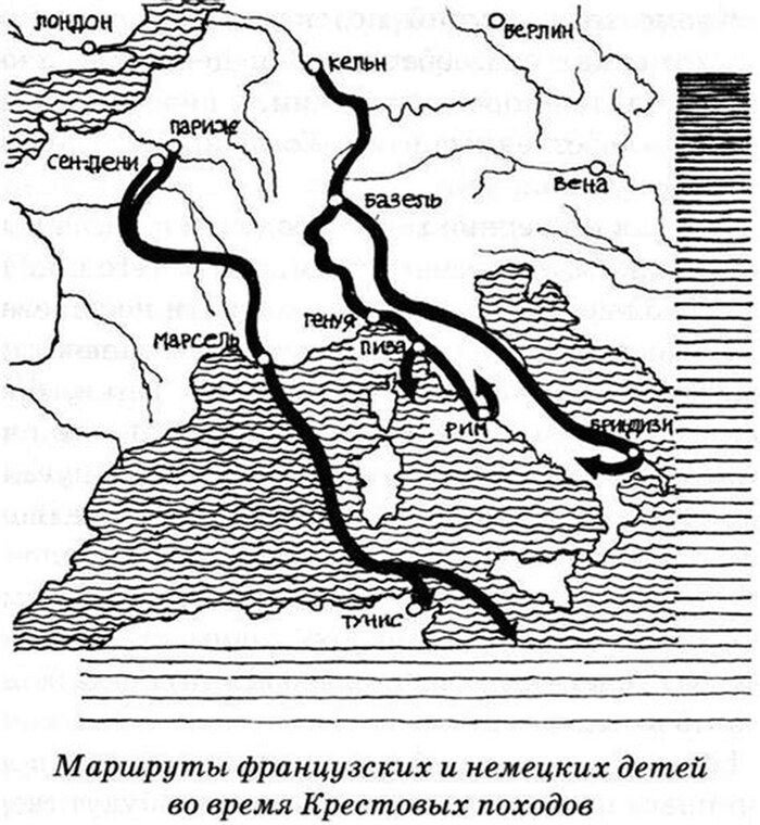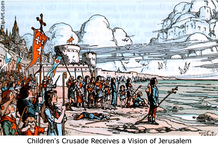 Пока юные крестоносцы шли по территории родной страны, население везде принимало их гостеприимно. Дети если и умирали в походе, то почти исключительно от солнечных ударов. И все-таки постепенно усталость накапливалась, дисциплина ослабевала. Чтобы поддерживать энтузиазм участников похода, ежедневно приходилось лгать, что к вечеру отряды прибудут к пункту назначения. Завидев вдали какую–нибудь крепость, дети возбужденно спрашивали друг друга: "Иерусалим?" Бедолаги забывали, а многие и просто не знали, что достичь "святой земли" можно, лишь переплыв море.