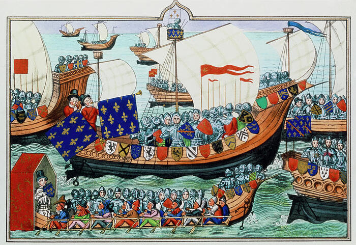К следующему утру участников похода значительно поубавилось. Но это было к лучшему, оставшиеся сносно разместились на кораблях, очистив свои ряды от малодушных. Кораблей было семь. Согласно хроникам, крупный корабль того времени мог вместить до семисот рыцарей. Таким образом, мы с достаточным основанием можем предполагать, что детей помещалось на каждый корабль не меньше. Значит, корабли приняли около пяти тысяч ребят. С ними было не менее четырехсот священников и монахов.