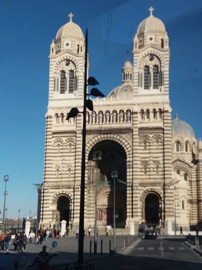 Утром 19 ноября, в 8 часов наш героический лайнер прибыл в Марсель. Рядом с нами, в соседнем терминале, пришвартовалась другая Коста - Фаволоза. Надпись Марсель на горе, куча строений вокруг, огромный порт. С балкона так-то не понять насколько велик порт Марселя. А вот когда выезжаешь на шаттлбасе (11 евро за человека, жадные французы -1) и едешь минут 25 через весь порт и еще минут 20 в город понимаешь его масштабы. Проезжая через порт, в какой-то момент все начали активно шуметь, глядя в окно. Ну мы не остались в стороне, и увидели как плохо одетых людей загоняют за сетчатое ограждение. Из комментариев гида стало ясно, что поймали партию очередных беженцев из Африки. Их было человек 30-40. Видимо они прибыли как контрабанда, в каком-нибудь контейнере через море. Наш шаттл продолжил свой путь из порта, ехали мы долго, и в тишине. Даже обычно шумные итальянцы наконец угомонились. Шаттл прикатил в город, совершил кучу разворотов, и поехал обратно в порт Мы такие - Эмммм, мы хотели выйти ващет На что водитель привез нас к форту Сент Жан, он же музей, высадил и объяснил, что шаттлы стоят здесь и отправляются обратно каждые 20 минут Каждый вечер нам давали программку лайнера. В самый наш первый день принесли на английском, но потом наша стюард Джоанна узнав что мы "руссо туристо" приносила всю информацию на русском. Из программки мы узнали, что в Марселе будет МИСТРАЛЬ и нужно одеваться тепло. Там был такой МИСТРАЛЬ. Было очень холодно, мы то были готовы к этому, но "ох уж эти американцы" были в шортах и футболках Пройдя по улице, мы вошли в очень длинную арку, где расположена куча кафешек. Но через дорогу был порт с яхтами, мы перебрались туда и пошли вдоль заборчика. Солнце светит, но из-за холодного ветра-мистраля, толку было мало. Фоточки не получались из-за солнца И где-то вдалеке на горе за портом был виден их местный Нотр Дам Де Ля Гард. Пройдя метров 100 мы нашли туристический вагончик, с длинной очередью, нашли опять своих с лайнера, и купили вместе с ними билеты по 8 евро. Мда... Носиться с такой скоростью в вагончике как-то не входило в наши планы Может водитель вагончика думал, что раз он марселец, то и гонять нужно как в том фильме ТАКСИ (Действие фильма происходит в Марселе). Там такие узкие улочки, хотя и живописные. Увидели Кафедральный Собор de la Major, попу марсельской лошадки, множество фресок на стенах домов, еще кучу неопознанных мною домов. Сделал остановку в районе ТЦ, честно говоря его просили остановить у Кафедрального собора, но он там не остановил. Странные французы. Катались минут 40. Русского аудиогида НЕТ. Хотя он был заявлен. Привез нас он обратно в то же место откуда и забрал. Честно говоря не очень понравилось, да и не только мне. Остальные возмущались и жаловались. Французы были не очень приветливы честно говоря. Жадные французы-2. Магнитики везде где мы были стоили 1-2-2,5 евро. В Марселе 4-5 евро. Лаванда их хвалёная тоже от 20 евро. Мыло с лавандой не меньше 5-8 евро. В туалет они не пускают даже за деньги. В Ватикане, в Риме, на Пальме, в Савоне, в Ла Специи зайдя в любой магазинчик или кафе при слове туалет они приветливо машут, указывая путь. Пытаешься поблагодарить, а они говорят - мол не за что, обращайтесь в любой момент. А французы корчили рожи, типа отвяньте. Мда... По улицам с ветром носится мусор, пыль и песок. Это в портовом то городке. До этого в других пор
