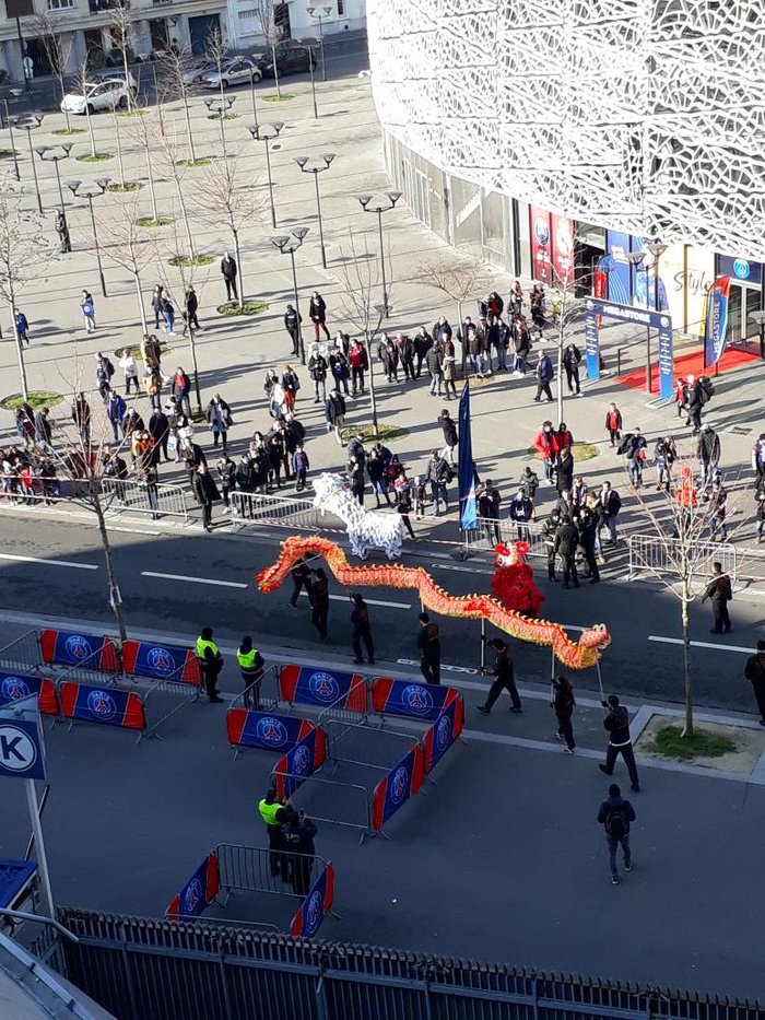 За несколько минут до начала матча «ПСЖ» - «Страсбург» переполненный Парк де Пренс ожидал появления на поле своей бразильской звезды. Какого же было удивление публики, когда из подтрибунного помещения первым показался... дракон! Нет, это не Златан решил вернуться за Эйфелевой башней. Просто парижский суперклуб решил таким образом отпраздновать китайский Новый год, который отмечали накануне матча, 16 февраля.