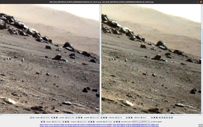 Это тоже Sol 343, снимок соседней области. Цвет такой потому, что сделана корректировка цвета. На марсоходе Perseverance поставлены вроде бы очень хорошие камеры, но эти камеры имеют эффект "рыбьего глаза" и темнят на краю снимка.