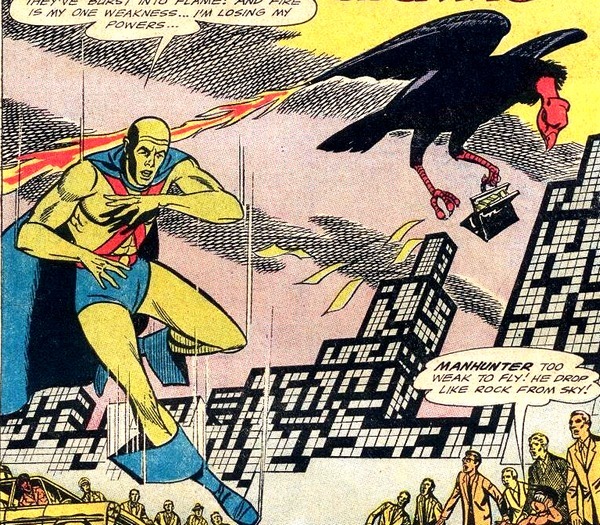 И произойдёт это как раз в комиксе House of Mystery #149. Ноунейм находит Голову Идола Диаболу на свалке и попадает под её контроль. И начинает превращаться в странных существ и творить непотребства...подозрительно слабого уровня. То в крота превратится и выкопает закопанный каким-то пацаном “клад”, то станет существом с носом-перфоратором и извлечёт из стены здания закладку капсулу времени. Сбежав от полиции, ноунейм превращается в огромную птицу и находит схрон какого-то бандита. Марсианин ноунейма задержать не может - птица оказывается огнедышащей, а рядом с огнём Марсианин теряет суперспособности (в этот период вообще “слабости” это именно “слабости” а не “уязвимости”, так что даже криптонит не причиняет Супермэну боль, а просто лишает его сил, например). В Книге Диаболу есть лишь одна подсказка – “Берегись спрятанного томагавка шамана”. А ноунейм-перевёртыш как раз склонен находить спрятанное...почему он тогда не нашёл томагавк?