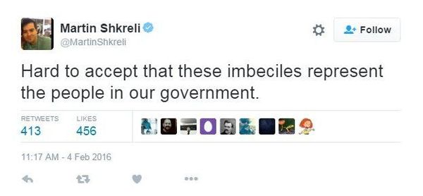 Шкрели превратился в самого ненавидимого человека Америки, причём скандал пришёлся на начало предвыборной президентской гонки в США и оба кандидата яростно обличали предпринимателя, обещая довести дело до тюрьмы.