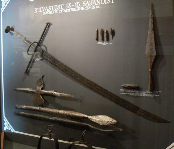 С ножом всё понятно, это простое клинковое оружие. Большей частью используемое по хозяйству. В 14-16-м веках ножи выглядели вот так:
