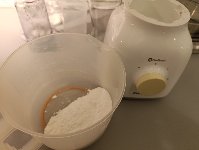 Пока орехи сохнут, приготовим сахарную пудру в блендере. Сахар берем в расчете 1 к 2, то есть, 1 часть сахара и 2 орехов. Итого нам надо 150 грамм пудры. Можно взять и готовую, но мне хочется делать самой. Тем более, без блендера все равно ничего не выйдет.
