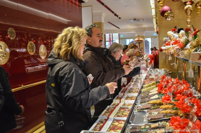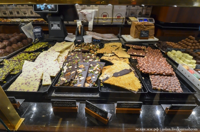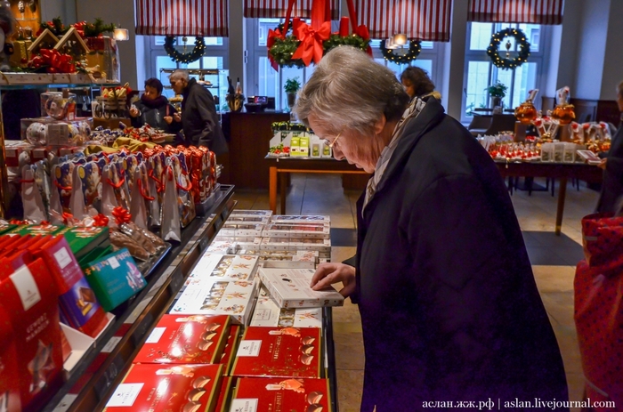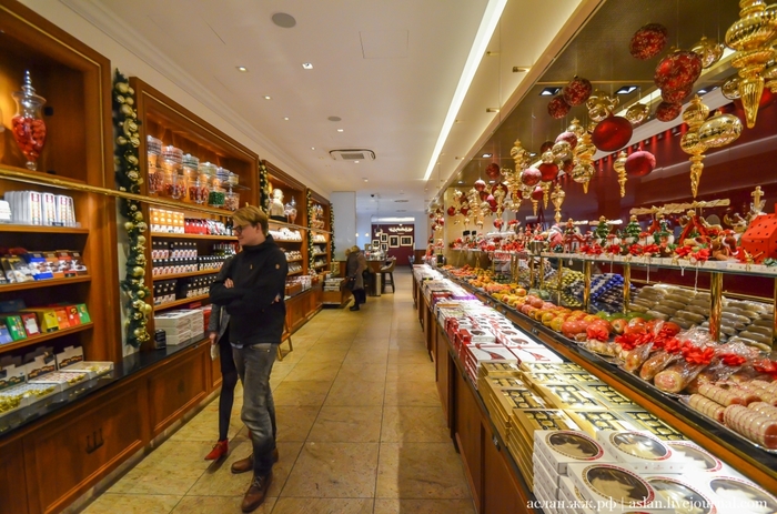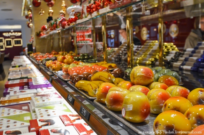 А если ты смелый, ловкий, умелый и знаешь все про любимую сладость, то там же можешь попытать счастья, ответить на вопросы проходящей у специального автомата викторины, и выиграть парочку марципановых сладостей. На втором этаже этого магазина, для особых гурманов есть фирменное кафе, где местные кондитеры на марципан тоже не скупятся и щедро украшают им свои кондитерские изделия. Главное не переусердствовать и не переесть, а то так слипнется что-нибудь.