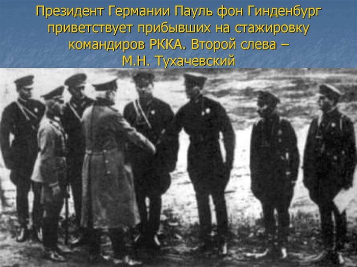 О военных заговорщиках было немало рассказано различными деятелями третьего рейха. Им было известно о сотрудничестве между рейхсвером и Красной Армии в период действия тайного соглашения с 1923 по 1933 год. В ходе этого сотрудничества были установлены тесные личные связи Тухачевским и рядом других советских военачальников с германскими генералами.