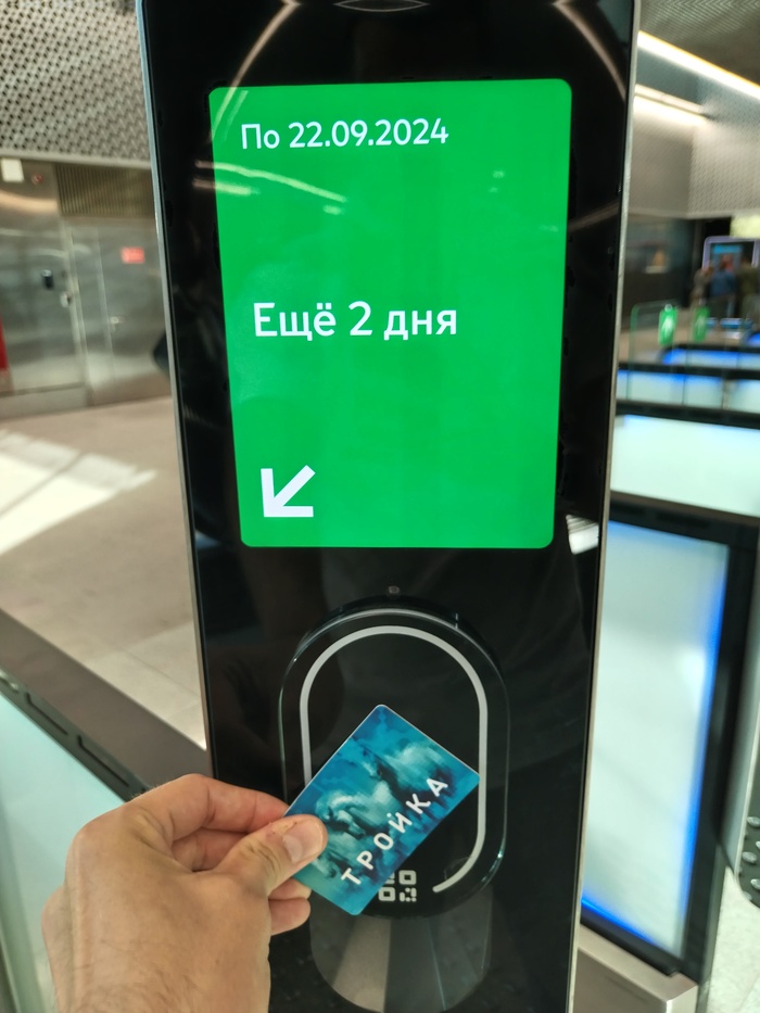 Войдя на станцию через инновационный турникет я пошел к стойке, она же - вендинговый автомат с большущим дисплеем.