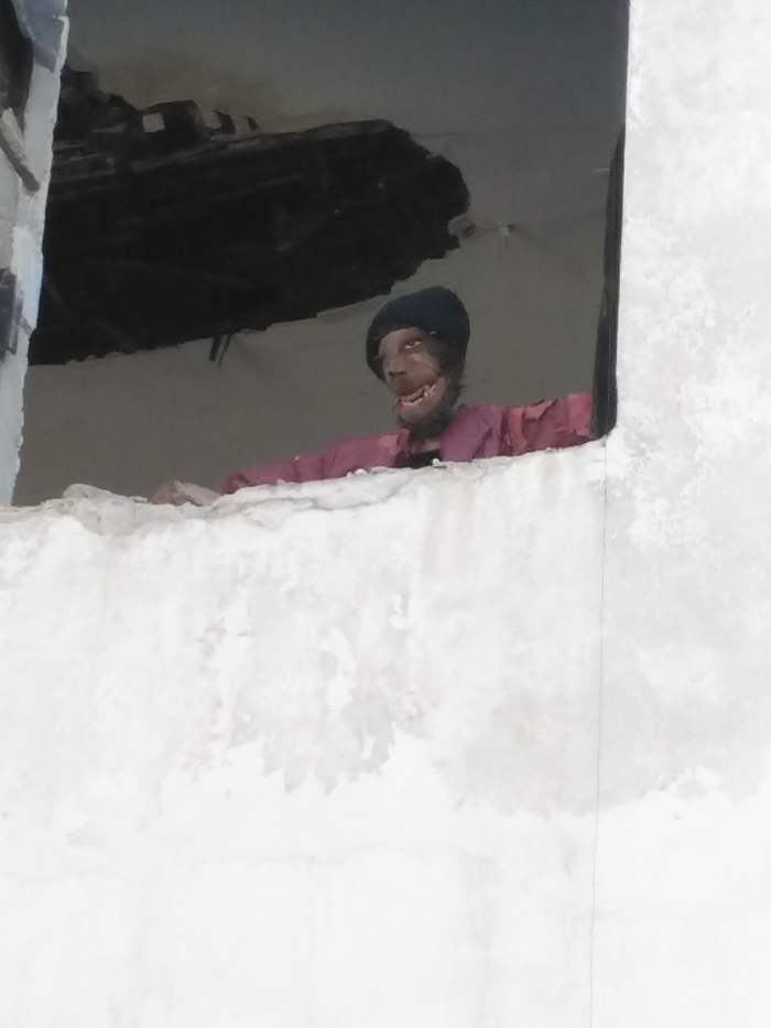 Так как ночью по развалинам я и сам срусь ходить, то я взял пакет с маской и пошёл туда днём с другом(с другим другом), что бы он меня пофоткал.