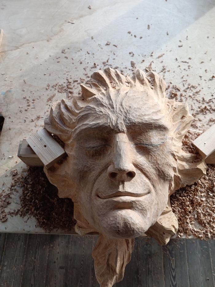 Первоначальная описка, потом опять задолбливал, сглаживал и описывал. И так несколько раз. Рога добавил из спила березовой ветки.
