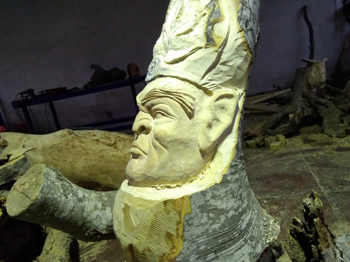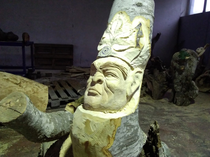 Первоначальная описка, потом опять задолбливал, сглаживал и описывал. И так несколько раз. Рога добавил из спила березовой ветки.