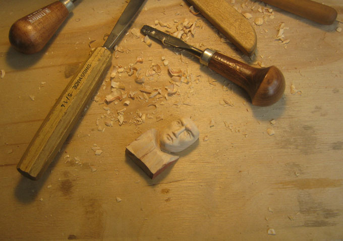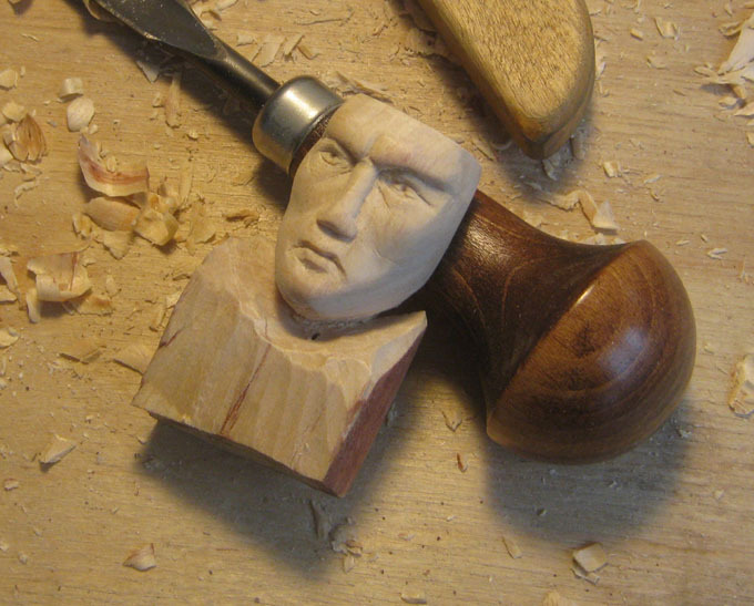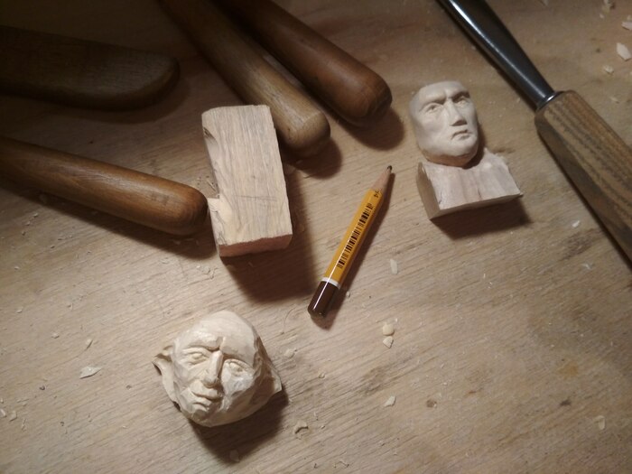 В прошлой серии были дубовые, теперь из липы. Огрызков остается масса, иногда вот так начнешь что-то забавы для вырезать, смотришь и головешка готова.
