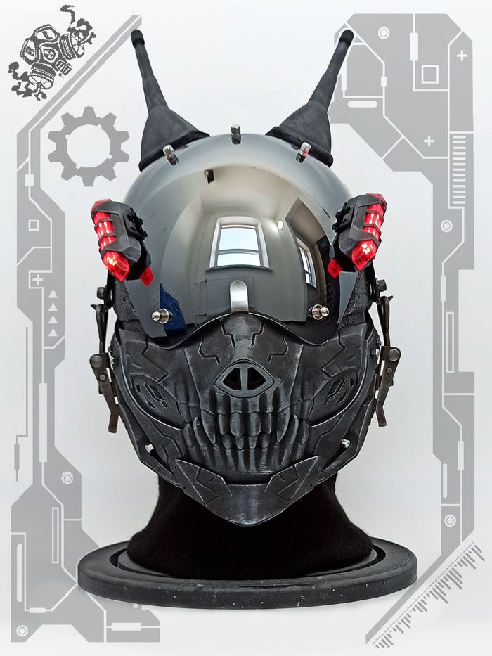 Съемный визор. Имеется подсветка. Удобное затылочное крепление. Изготовлена лично мной в единственном экземпляре. Продается.