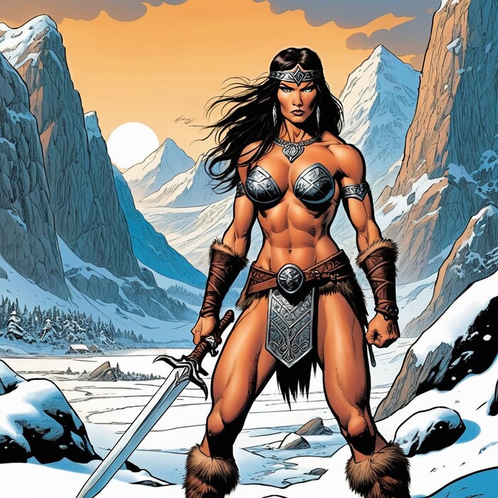 Хорошим примером этого является Таарна, воительница из фильма Heavy metal (1981). Но чтобы понять образ, о котором я говорю, нужно посмотреть сам фильм, и не представленные изображения - на них она выглядит слишком хрупка. В фильме она более коренаста.