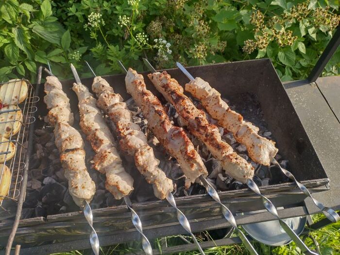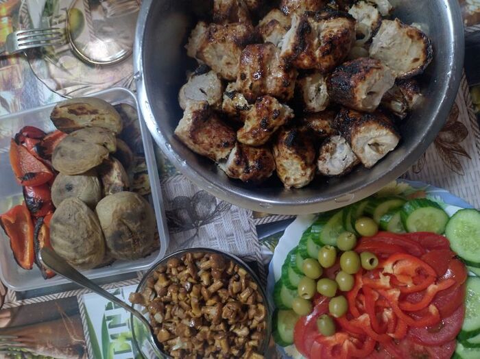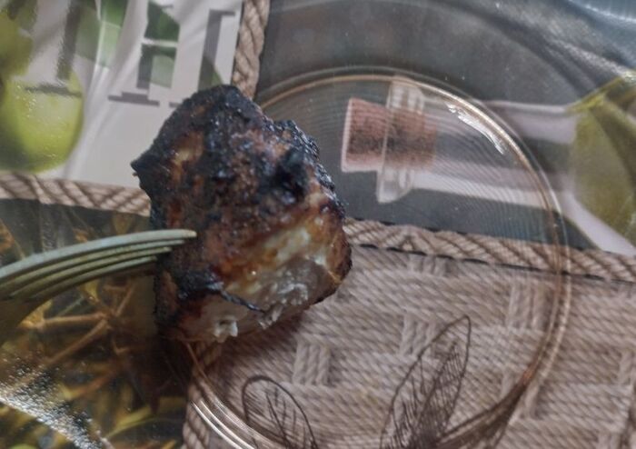 И вилка тыкает в кусочек из свинины шашлыка, ...как в то, чего так долго ждали. В нетерпеньи...