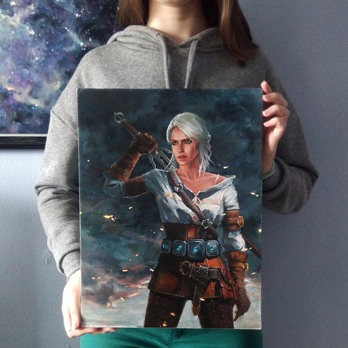 Свершилось. 2 часа ночи. Основной этап пройден. На радостях даже подписал, но потом стёр, ведь я никогда не подписывал свои картины до этого момента, захотелось придумать подпись поизящнее. Потом таки пришлось скорректировать детали и усилить контрастность, прежде, чем заказал рамку. Повесил на даче в прихожей.