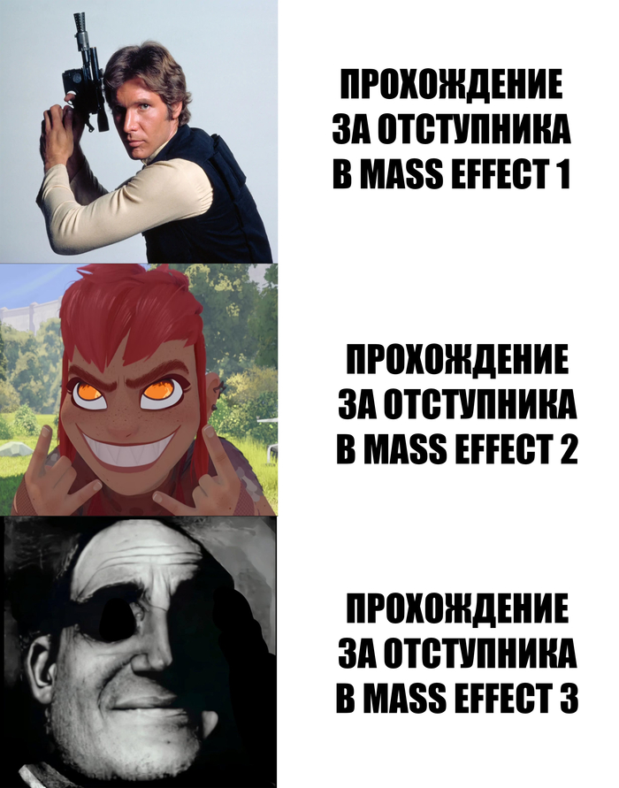 Система морали в Mass Effect — одна из самых заметных, но и устаревших ее черт. Она делится на два пути: Герой и Отступник. Пытаясь быть сереньким и угодить всем, вы в итоге не добьетесь ничего.