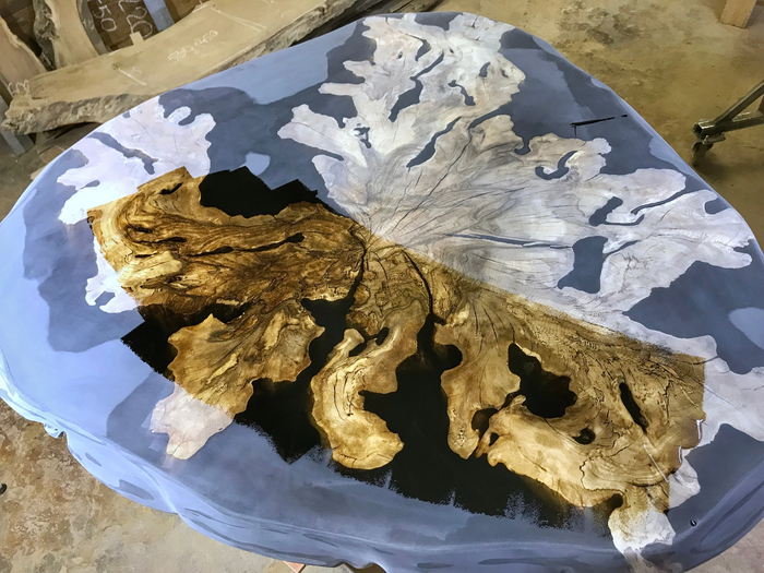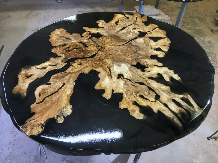 Залили эпоксидной несколько столешниц из слэбов корней ореха. Пока красавцы сохнут, но скоро часть из них разберут новые хозяева.