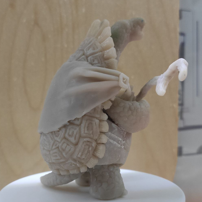 Лепил я его недели три с перерывами, из непривычной для меня глины телесного цвета с эффектом кашемир. Что могу сказать по поводу этой глины - либо мне так повезло и она оказалась очень свежая (не смотрел даты на упаковке, каюсь), либо это эффект именно этой серии, но глина очень мягкая. Легко мнется, легко принимает нужную форму и так же легко её теряет при малейшем касании.