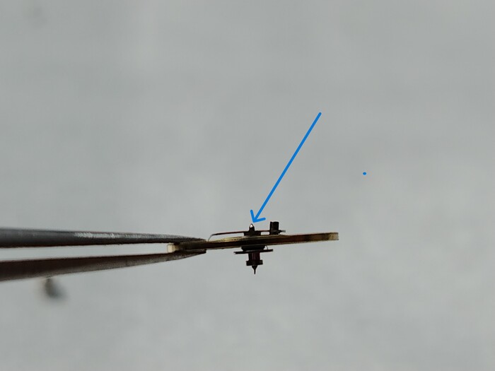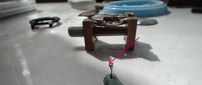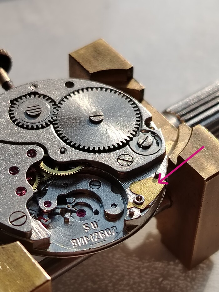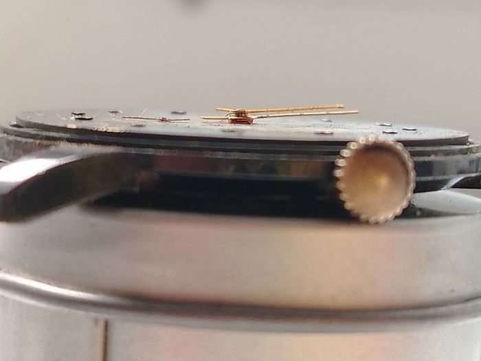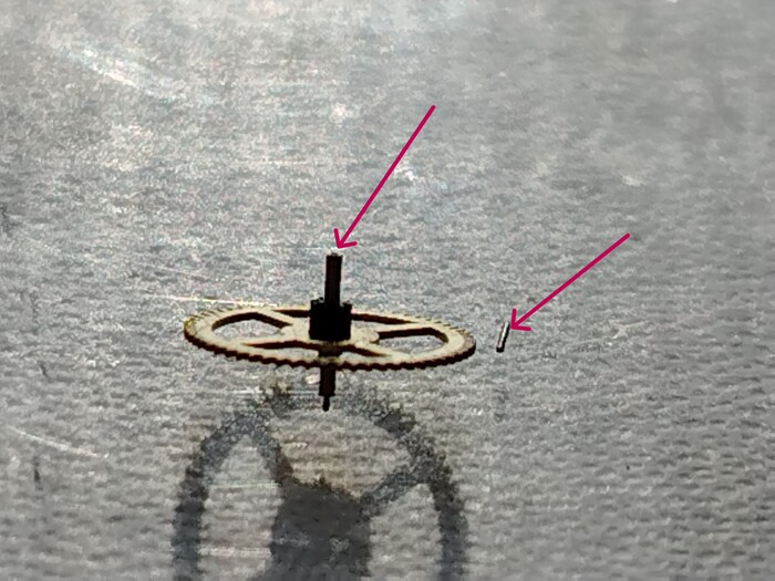 Стрелка секундную на ее уже не посадить так как на моих глазах обломалась цапфа.