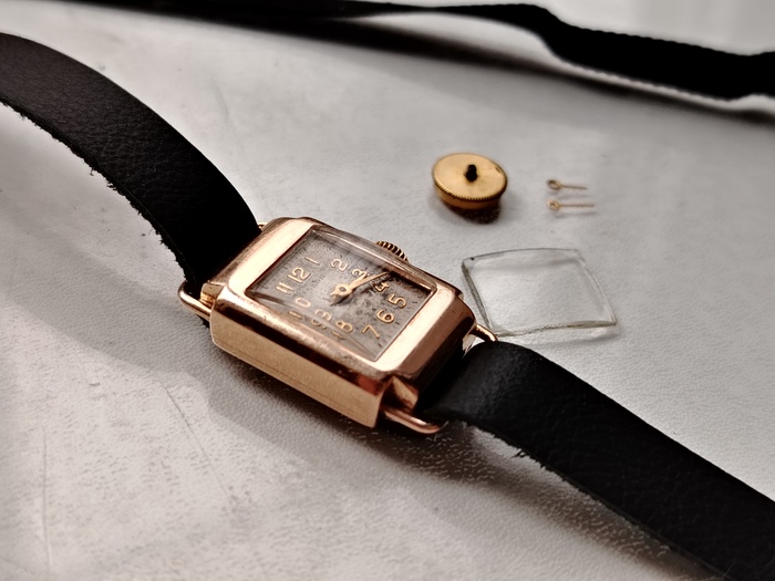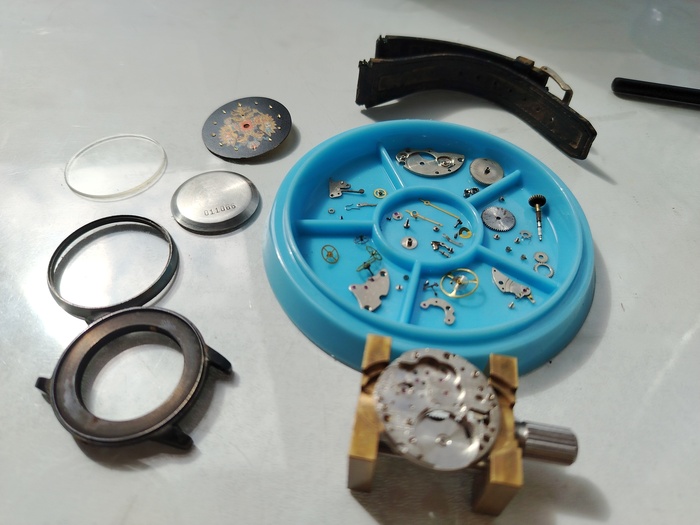 Замена стекла, стрелок которые уже практически не держались, полностью пружинный барабан, новый кожаный ремешок и все прочее дал нужный результат.