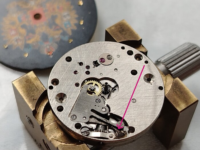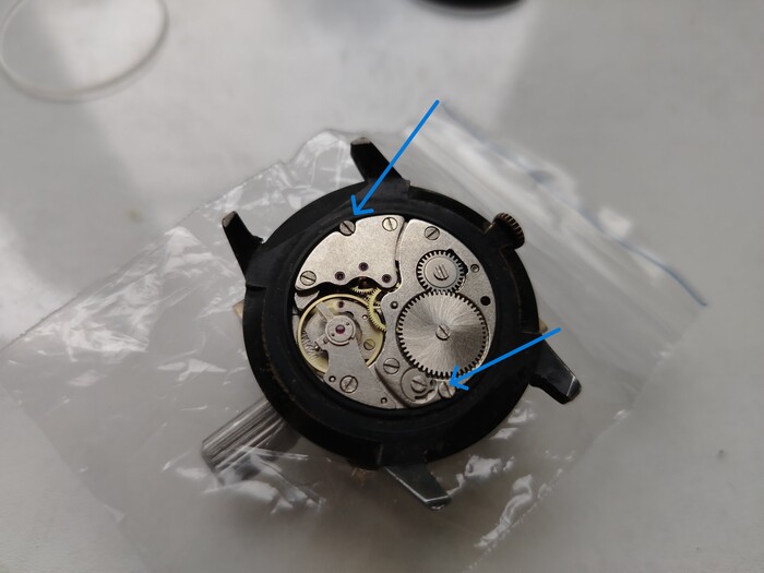 При разборке легко обнаруживаю не до конца закручен винтик в ремонтуаре, это плохо так как не сядет плотно к механизму циферблат.
