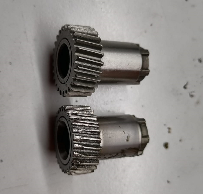Ситуёвина вся в том что сорвало шлицы ротора, а в следствии ведомая шестерня тоже вышла из строя. Как позже выяснилось что меняли до меня задний подшипник ротора, видимо разрушение предыдущего и послужило перескакиванием зубцов ротора относительно ведомой шестерни. В общем и целом замена заднего подшипника не помогла, всё было предрешено. Им (Валу ротора и ведомой шестерне) конец.