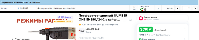 - Так как оригиналы запчастей стоят как аналогичный перфоратор в сборе, то вот вам пример ниже. С верху самый дешевый оригинальный ротор, а ниже просто рандомный перфоратор в сборе на всем известной площадке. Если что это почти полная его копия, отличается только цвет и некоторые мелкие нюансы.