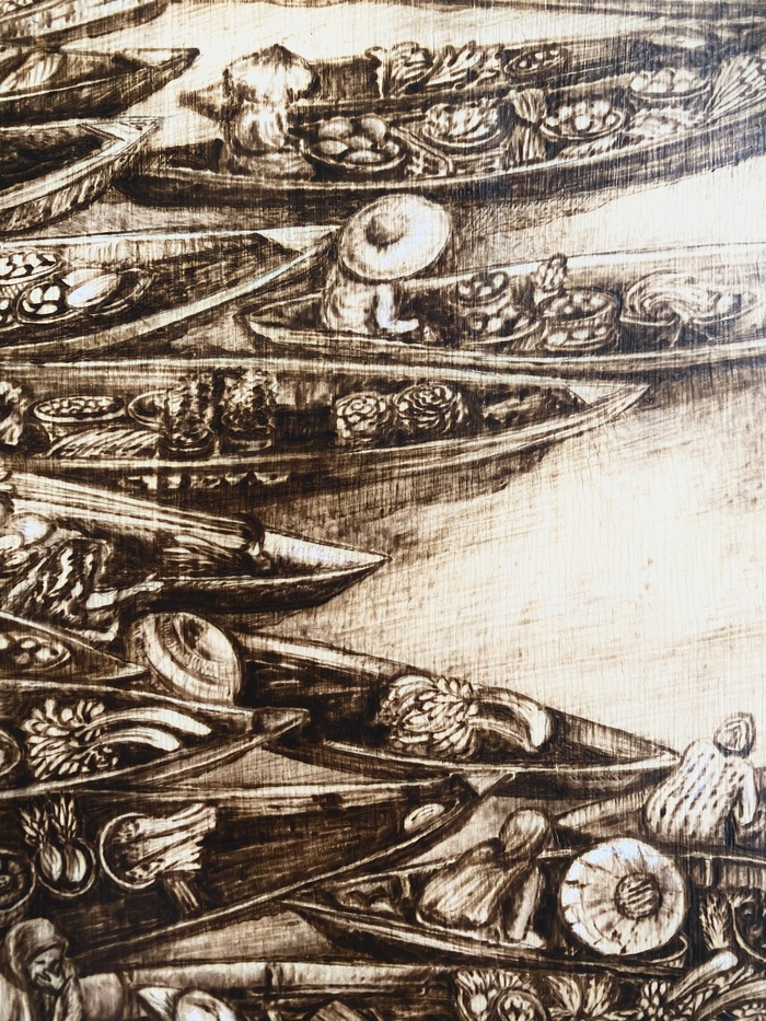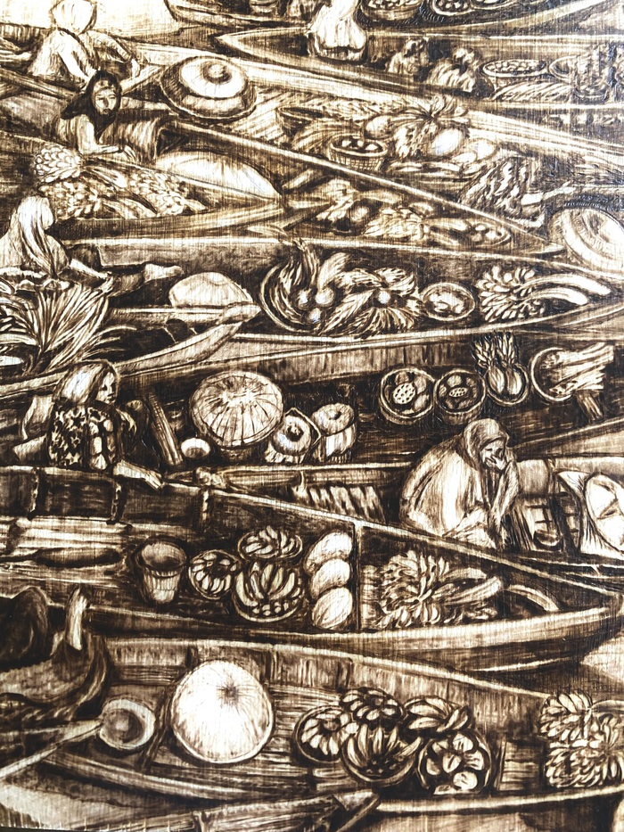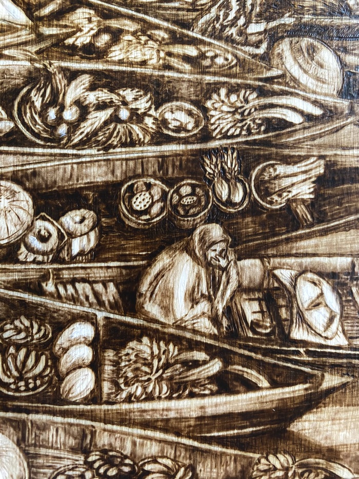 Начинала выжигать я с верхней части, с облаков. Они довольно простые в исполнении, и в принципе мне удобнее идти сверху вниз .