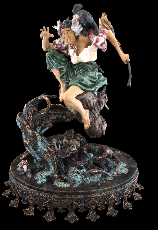 В славянской мифологии и фольклоре - старая лесная ведьма, живущая в глухом лесу в «избушке на курьих ножках», летающая в ступе, погоняя её пестом и заметая следы метлой.