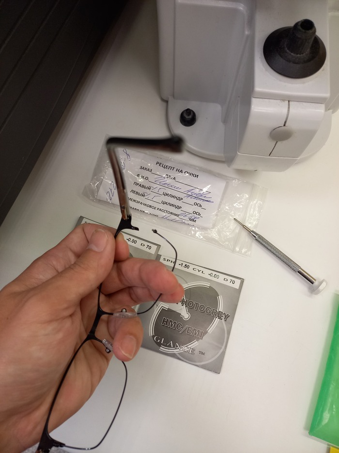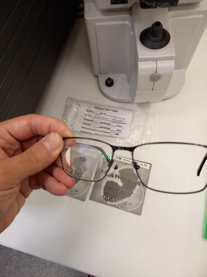 Выправка очков. Это важно, что бы не было ни преломлений(аббераций) по краям(перифирии) линз, ни головокружения.
