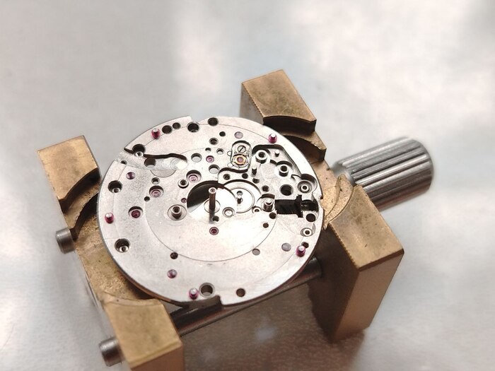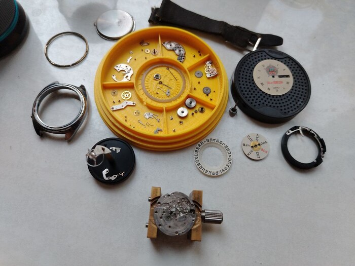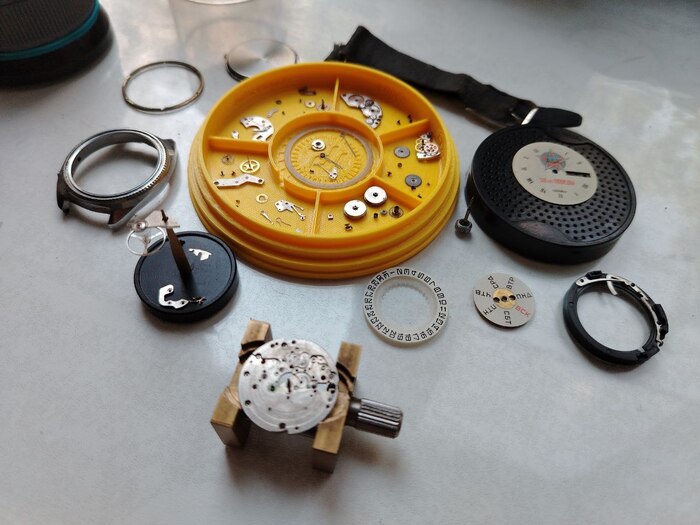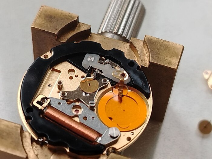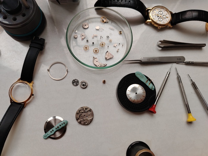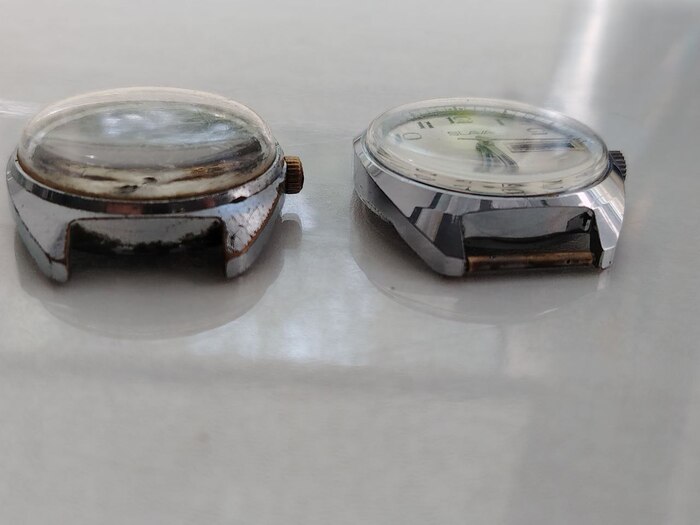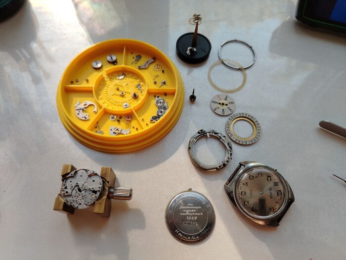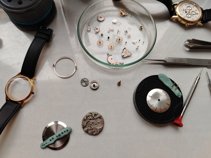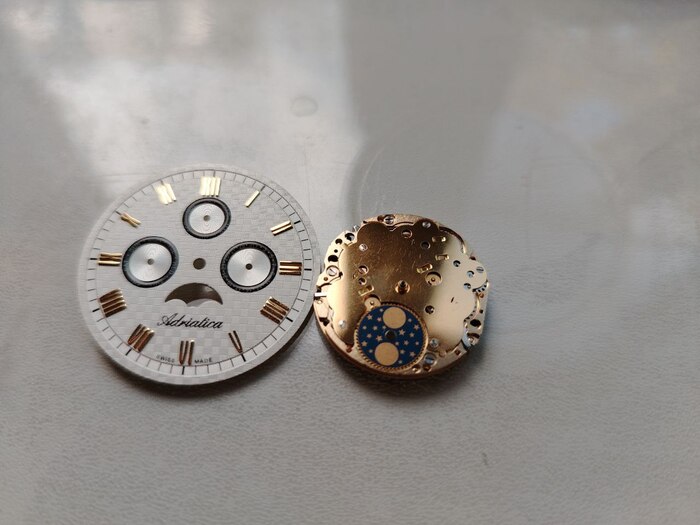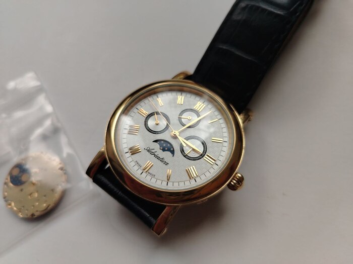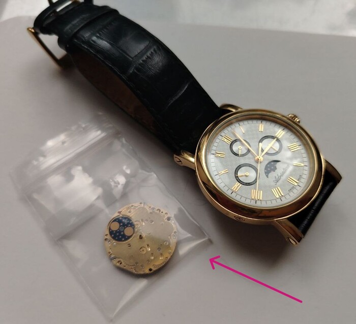 Тем более циферблат полноценно не крепиться к механизму, из за сломаной ножки крепления.