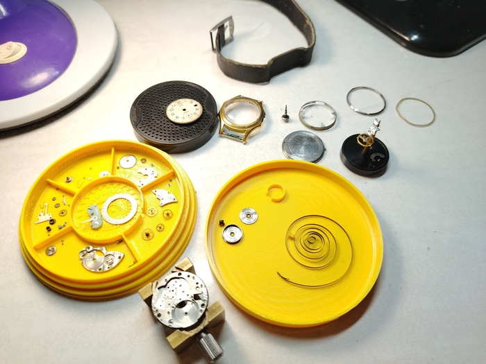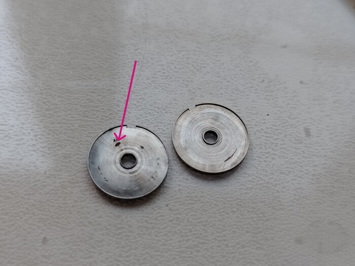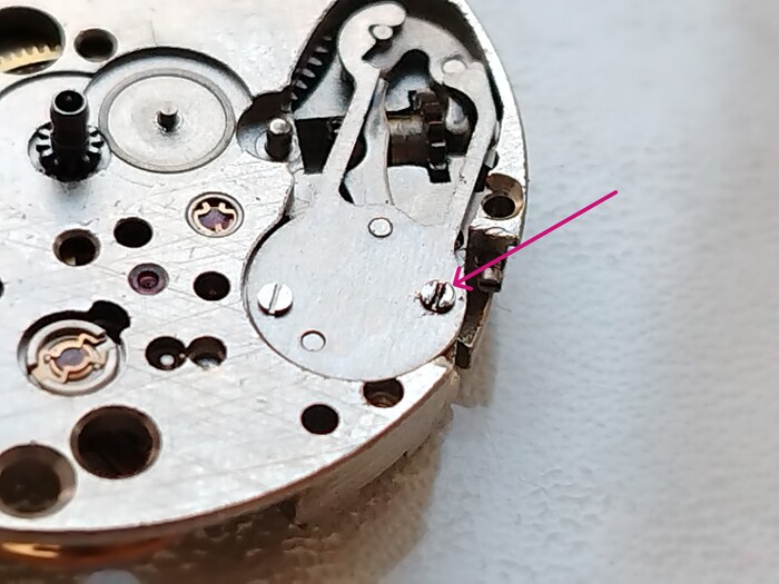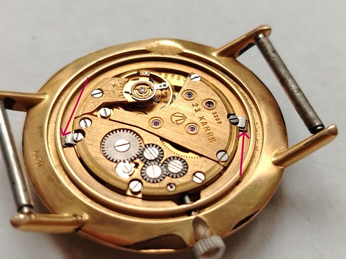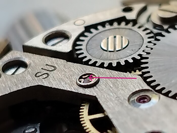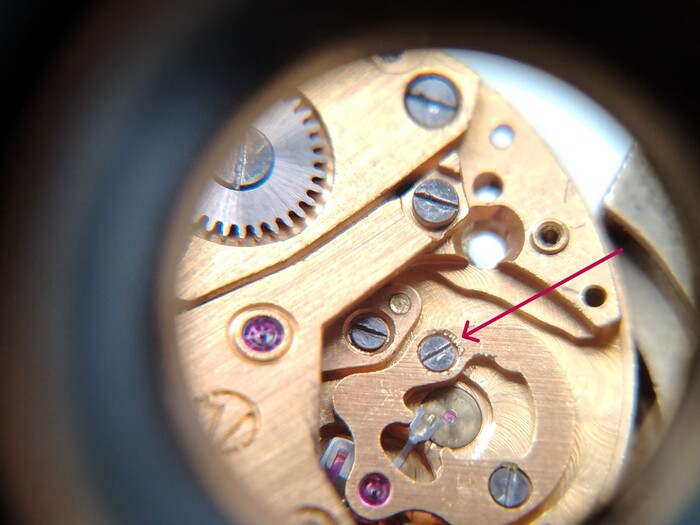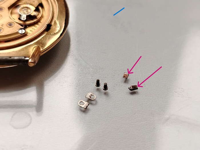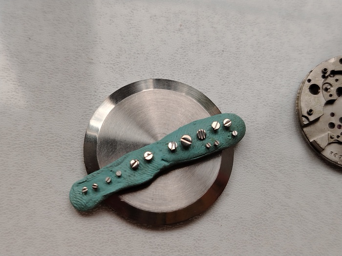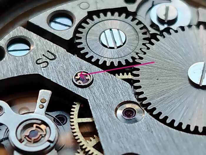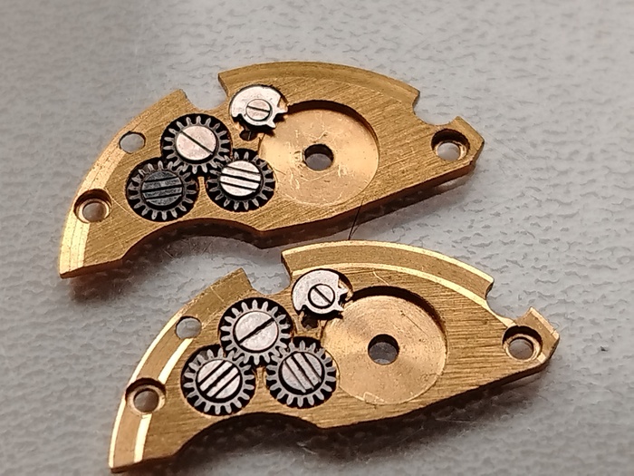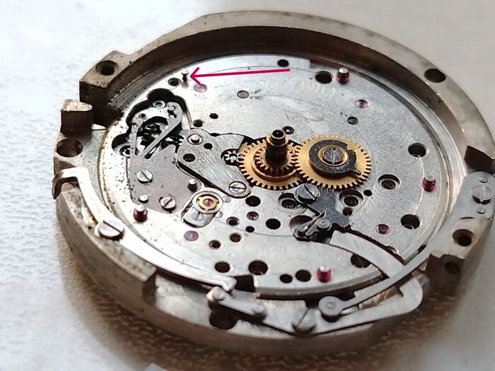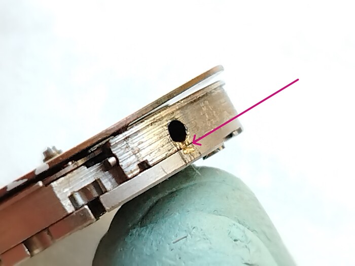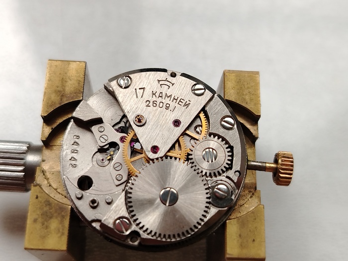 Справа центральное колесо в утиль, так как конечник на которое надеваем секундную стрелку обломлена чуть чуть.